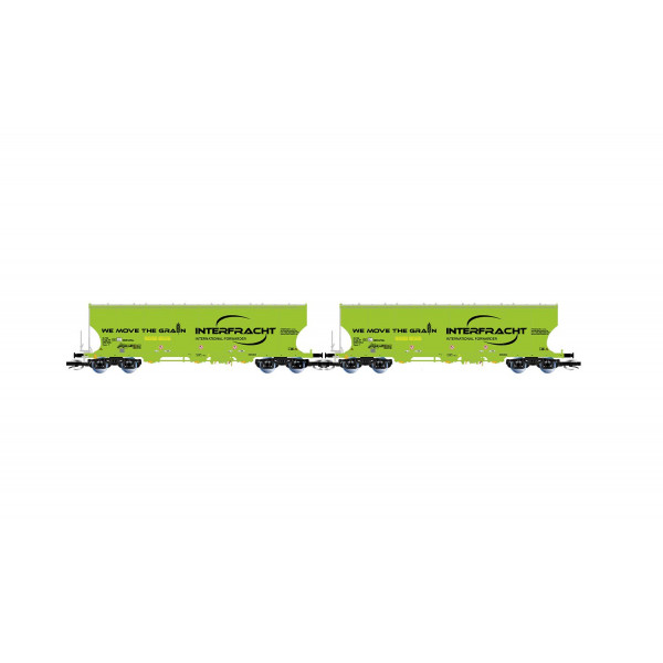Arnold HN9759, Set de 2 wagons céréaliers CZ-Interfracht à faces bombées en livrée vert néon, époque VI, échelle TT.